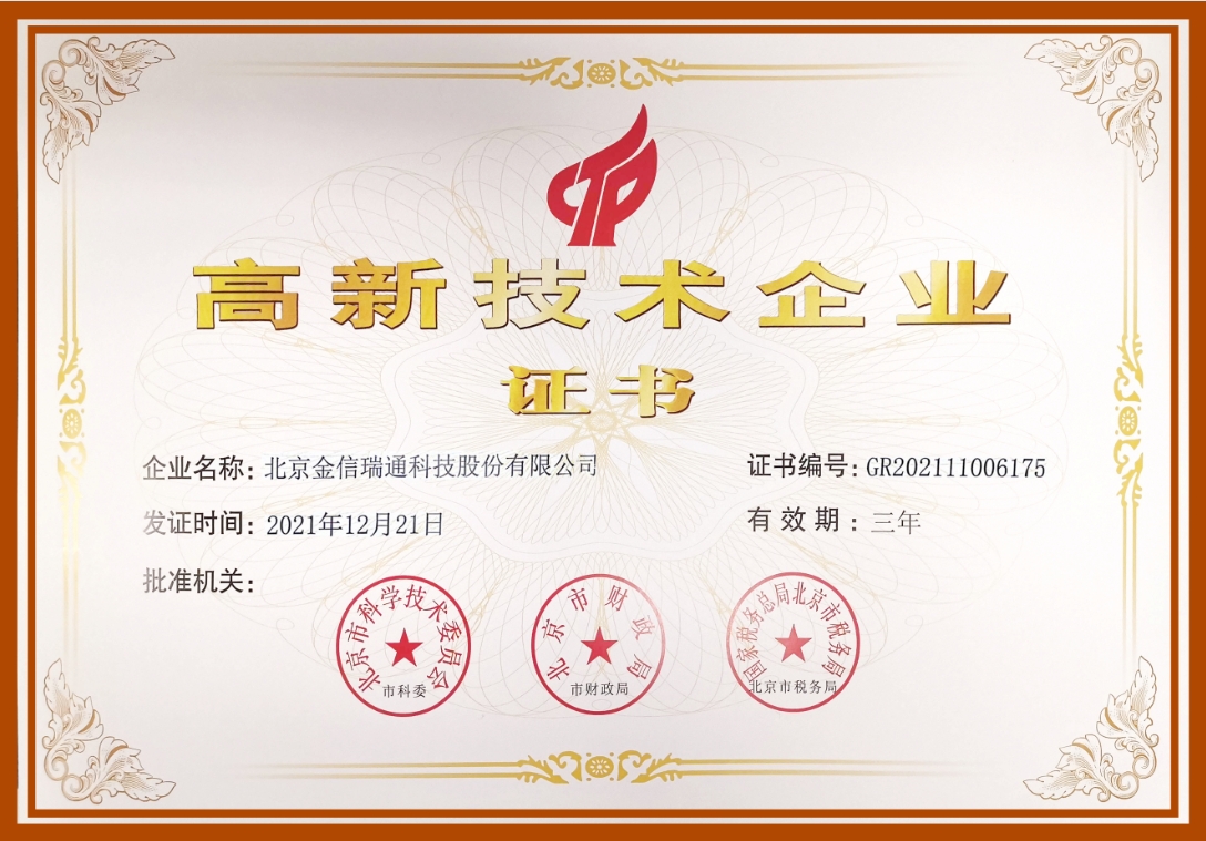 5月20日,北京金信瑞通成功加入中關(guān)村高新技術(shù)企業(yè),并榮獲...